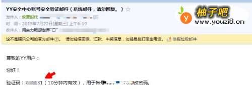 6我们的邮箱里面收到YY给我发的邮件了,下边就可以看见他的验证码
