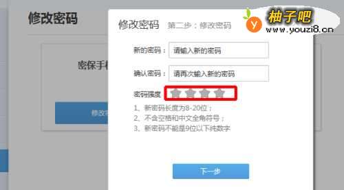 7我们把验证码放上去,他让我们输入两遍密码,下边会给我列出密码强度的评测