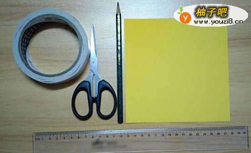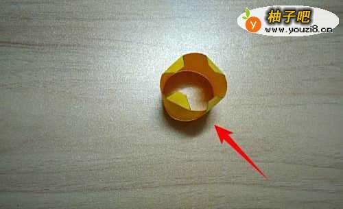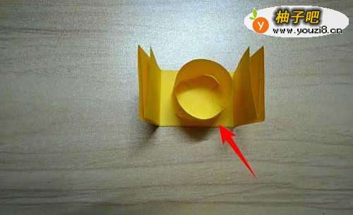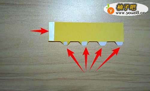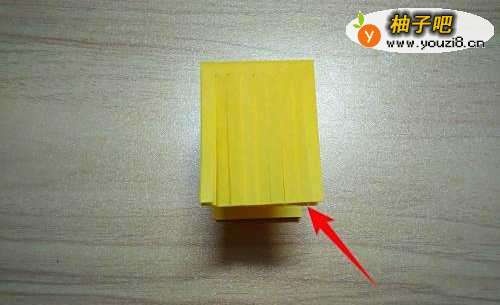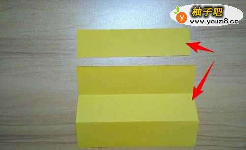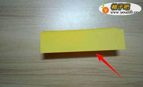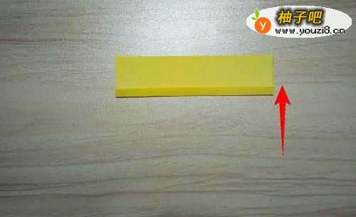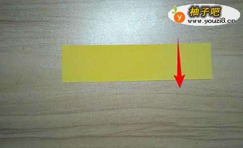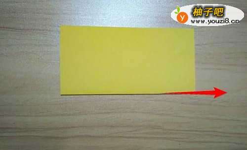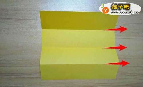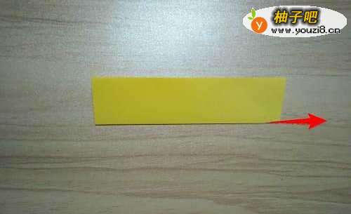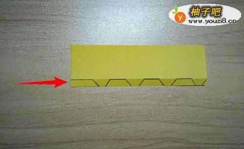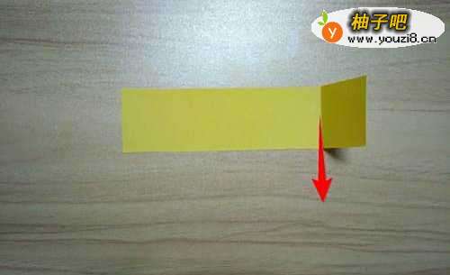 8拿出上面部分(四分之一的彩纸),约沿四分之一折向左边。