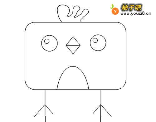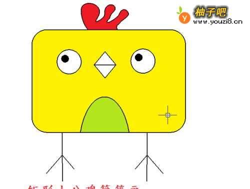 6然后用直线工具画小公鸡的脚,这样小公鸡的矩形简笔画就完成了,如图