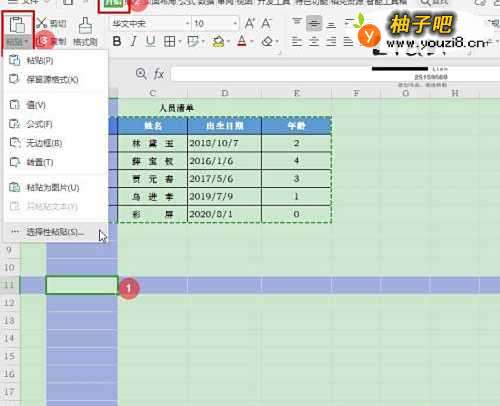 3选择单元格【B11】,点击【开始】—【粘贴】—【选择性粘贴】;