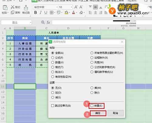4在“选择性粘贴”对话框中,勾选【转置】,然后点击【确定】;