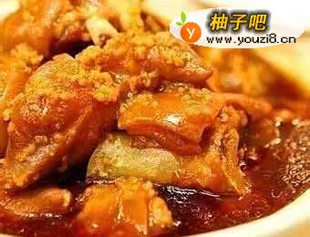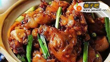 11、汁水快收干时,视情况看是否调盐,然后继续加盖焖至猪手收汁熟透