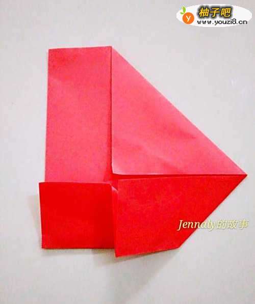 14在把上面的两个尖角向下折一小部分。得到如图图形。