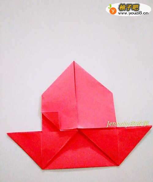 15现在把折纸翻过了。漂亮的折纸小船就折好了,是不是很好看,你学会了吗?