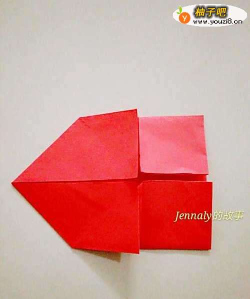 6然后再把刚在折的部分展开,把这在里面的三角形向外拉,得到下图形状。