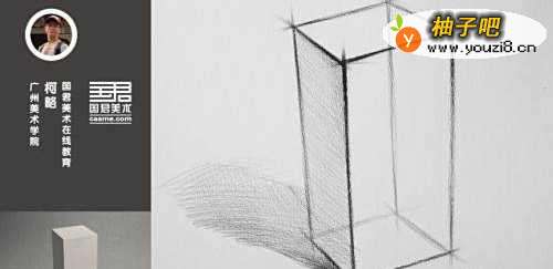 观察长方体的大概长的高度和宽度,如果写生的话,为了准确可以用炭笔比一下。也可以借助辅助线打形,注意近大远小,同时透视要准确。