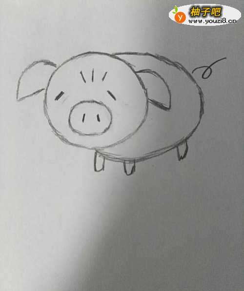 6最后画出小猪的尾巴和脚。一只可爱的小猪就画出来了,是不是很简单呢?大家学会了吗?