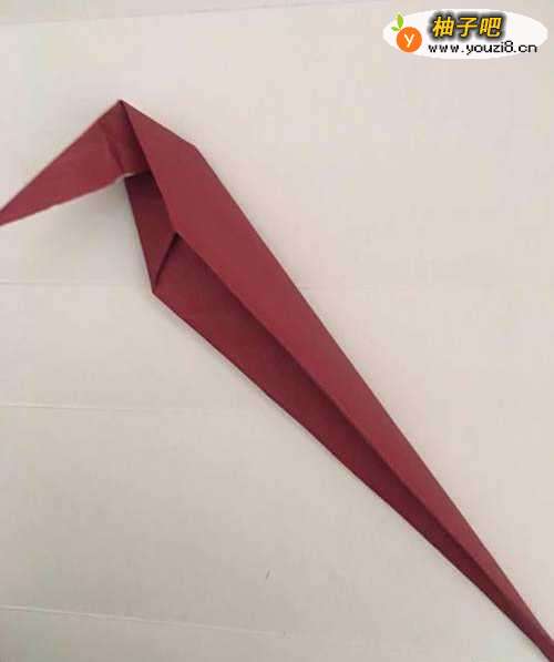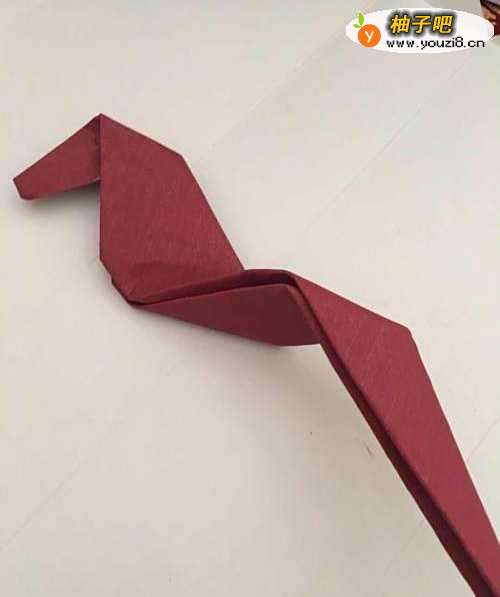 5第五步 折叠完蛇的头部之后 头部下粗一些的部分下面折上第一道折
