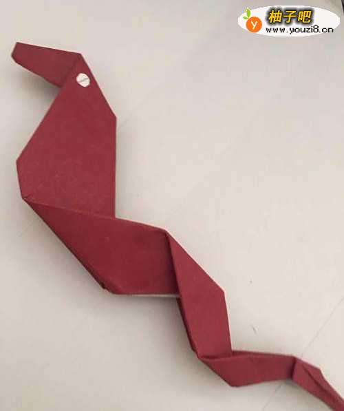蛇 一种身体细长而覆满鳞片的爬行类冷血动物 十二生肖之一 蛇有的有毒 而大部分没有毒 只要防范得当 蛇并不可怕 (害怕来源于无知)另外 蛇对农作物 林牧业的生态平衡也是做出了突出的贡献 下面我们就用紫色彩纸折叠一条酷酷的小蛇