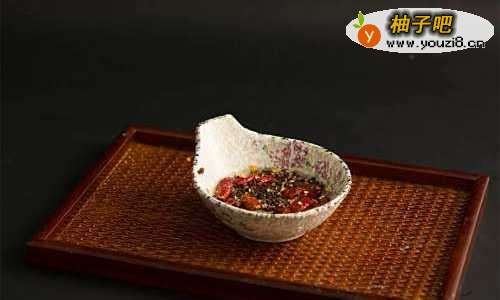2将干辣椒切成段后与花椒、香叶、八角一起用清水浸泡十分钟后捞出滤干水分;