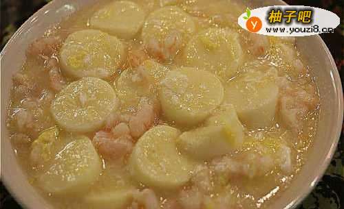 嫩滑的日本豆腐,蒸好后淋入用鸡汤、虾仁和蛋煮成的汤羹,鲜味之余清新又健康。