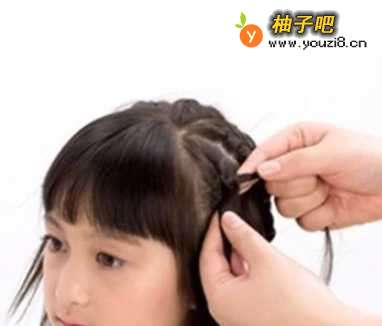 3接着上部分的头发一一编织成精巧的蜈蚣辫,编的时候还要不缝珠近断加新的发丝。