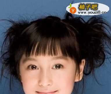齐刘海+饱满丸子头不仅将小女孩活波可爱的个性完美诠释了出来,而且整个造型也十分俏皮可爱,也还能甩其他小朋友发型好几条街呢。
