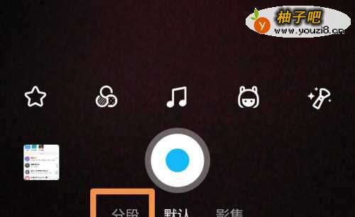 3打开拍摄之后,你可以看到默认的拍摄是连续不断的,点击分段。