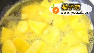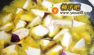 3锅里多倒些油,大火将茄子炸至金黄,捞出沥净油备用