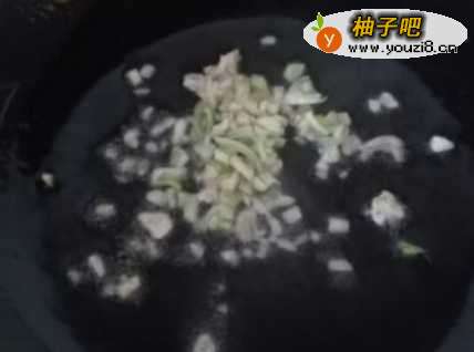 6锅中留一些底油,大火加热,待油7成热时,放入葱姜末和一半蒜末炝锅,倒入炸好的土豆片和茄子块翻炒