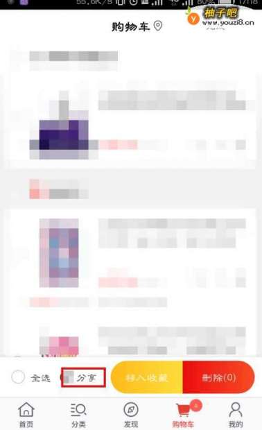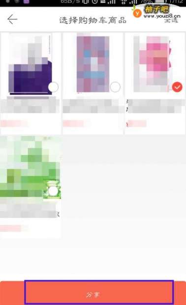 4然后选择我们要分享的购物车商品。