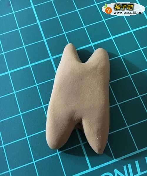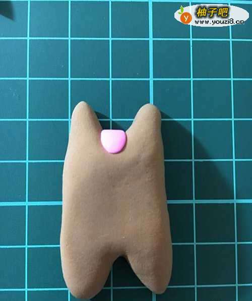 选取棕色的粘土,揉成椭圆形,做出两个可爱的耳朵。
