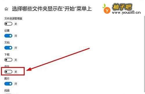 6找到“音乐”单击,显示为“关”,按钮变成灰色即可