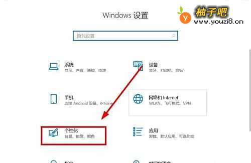 3在“设置”选项卡,找到“个性化”单击