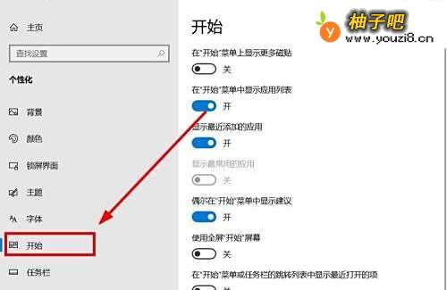 4在“设置”对话框,找到“开始”单击