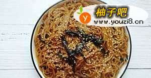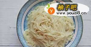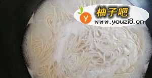 9另外起锅,水烧开,下入面条,煮软捞出,喜欢吃凉的过一下凉水。喜欢吃热的不用过凉水。