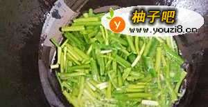 4锅里多加一点油,比平时炒菜多一些。油热放入葱段。