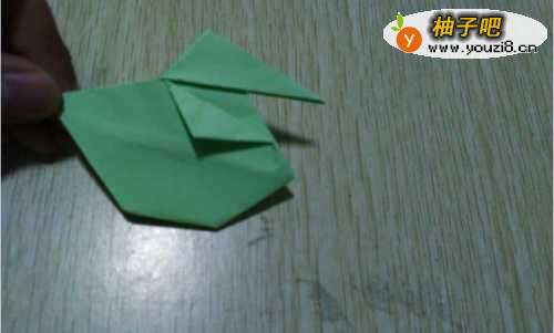 9然后将尖角部位由内侧向外翻折形成天鹅的头部。