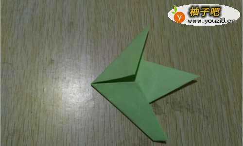 8将靠近尖角的部位折出一个小翅膀,反面也是如此,这样天鹅的小翅膀就形成了。
