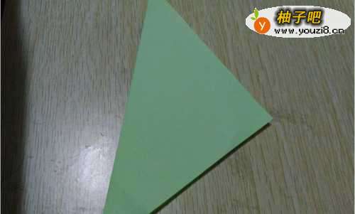 2将正方形手工纸的对角沿着对角线折叠,折成一个三角形的样子。