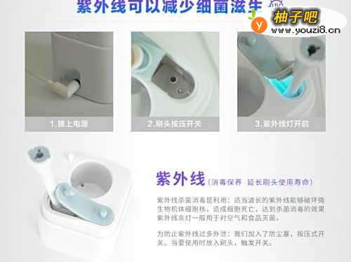 很多朋友并不是很了解电动牙刷,也不知道电动牙刷还可以消毒的,使用什么来消毒的。要是牙刷长时间在潮湿阴冷的地方放着,很容易就滋生细菌,产生霉变,同样会给我们口腔带来危害。就拿我用过的同同家电动牙刷来说吧,电动牙刷是可以分开刷头和刷柄的,这时候我们就不能不知道还有电动牙刷消毒盒的存在。