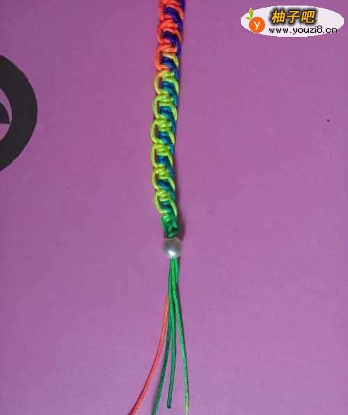 手工编织:云雀结五彩手链的简单编法(两根线)