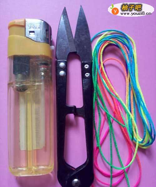 五彩线(玉线72号)。剪刀,打火机。珠子,,