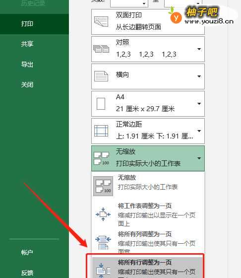 4将无缩放改为将所有行调整为一页