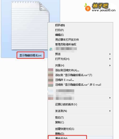 7这时候我们可以发现之前的文件名就会出现小圆点和后缀,需要修改的话选择右键菜单里的重命名即可。我建议小伙伴们把后缀名都显示出来,不然只靠图标未必能把所有的文件都了解。