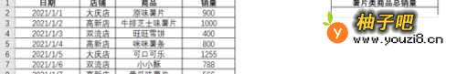 下表为某超市不同店铺之间商品销量,现需要统计薯片类商品2021-01-01至2021-1-11日期间的总销量。