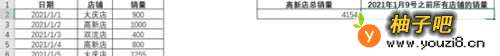 5选择F2,然后输入公司“=SUMIF(A2:A11,"<2021/1/9",C2:C11)”,然后回车即可。