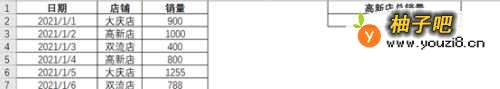 下表为某超市各个店铺的销量表,现需要将“高新店”的销量总和求出来。