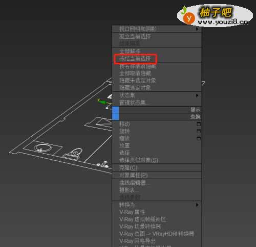 4然后我们选择平面图,鼠标右键。点击冻结当前选项,这个冻结之后,我们就选择不上这个图了,这个图的作用只是我们参考墙体位置和尺寸的。