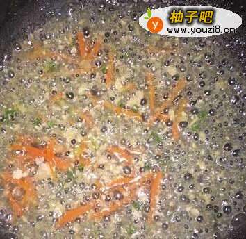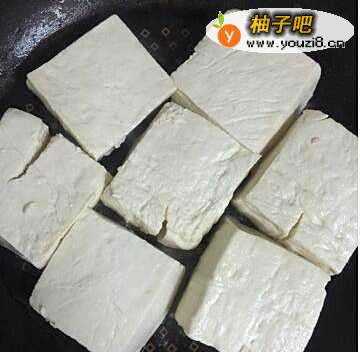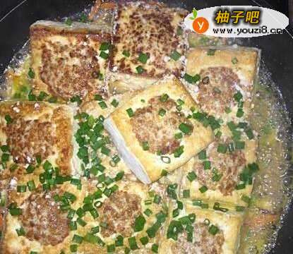 9豆腐和肉熟后加入葱花,豆腐盛起。