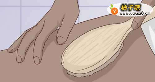 5用清洁刷刷遍全身。深层清洁毛孔,去除死皮。快速轻轻用软毛在用温和的洗面奶组合刷。你可以考虑使用面部刷,但你也可以考虑从头到脚的皮肤干刷。这样可以去除死皮,促进血液循环,并均匀肤色。