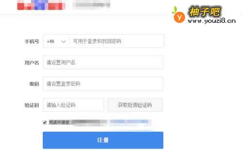 2输入手机号,填写用户名,设置好密码,勾选阅读并接受《用户协议》,点击立即注册。