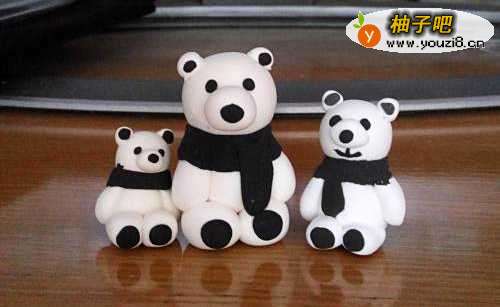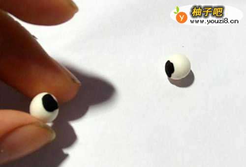 3用白色彩泥与黑色彩泥如图所示做成小熊的耳朵,粘