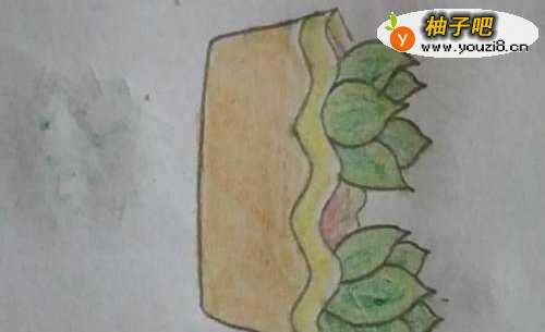 6选择黄色的彩铅将花盆的颜色涂上。绿色的彩铅将多肉颜色全部涂满。