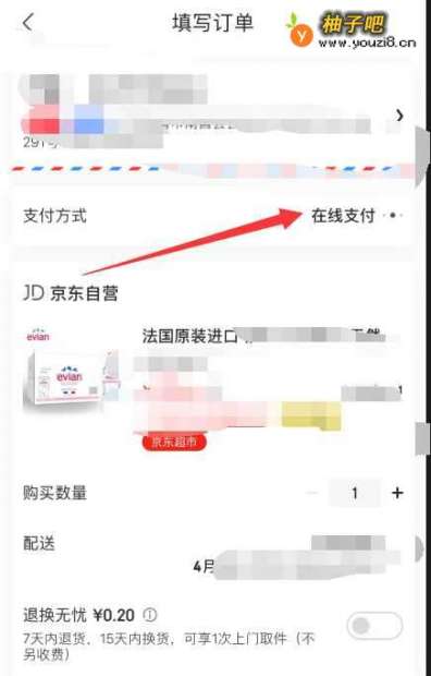 4如下图为订单确认页面,点击页面中的支付方式进入即可,如下图红标位置所示。
