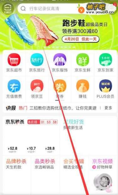 首先我们需要打开手机中的京东,如下图所示等待系统跳转到首页。