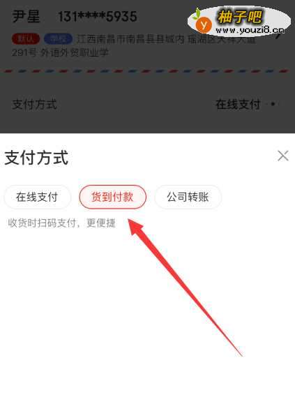 5支付类型三种可选,如下图所示,选择货到付款即可。