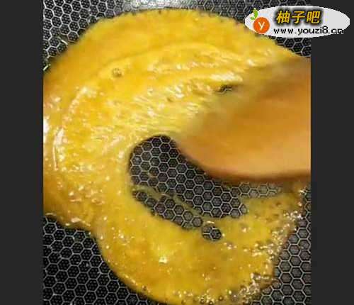 4锅,清洗干净,半碗水,一碗糖,糖炒至香油色,放花生。