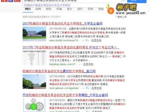 打开浏览器,百度一下:机械设计制造及其自动化专业大学排名,可以看到很多与该专业排名有关的内容
